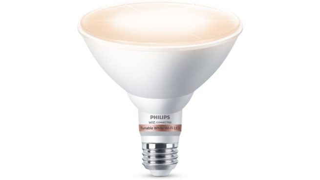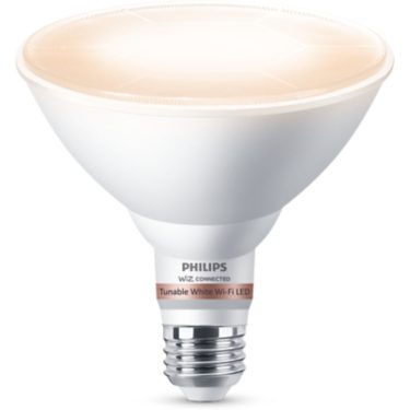 Get the conveninece of smart lighting with this Philips Wi-Fi Tunable White PAR38 bulb. Use the WiZ app or your voice to get preset light scenes and more. Philips Wi-Fi bulbs are WiZ-connected. Not compatible with Philips Hue.
